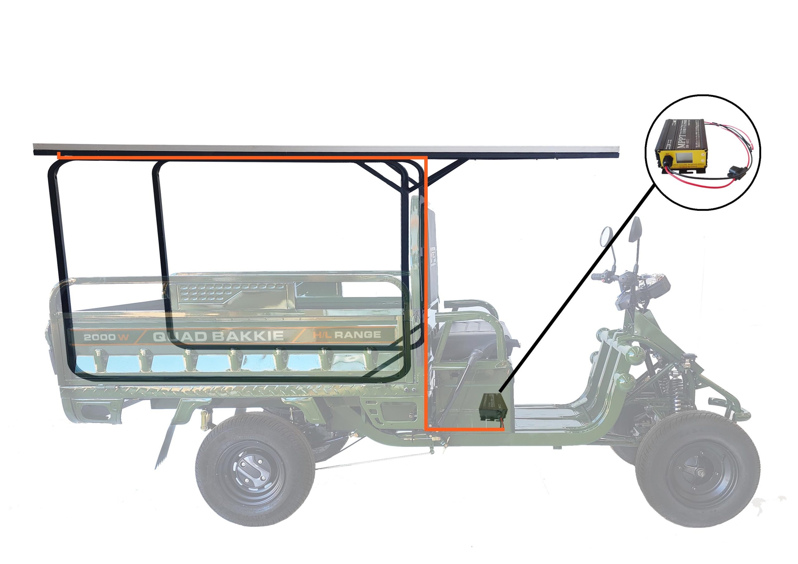 The Solar Conversion Kit includes a 395W Solar panel, mild steel frame, charge controller and wiring.